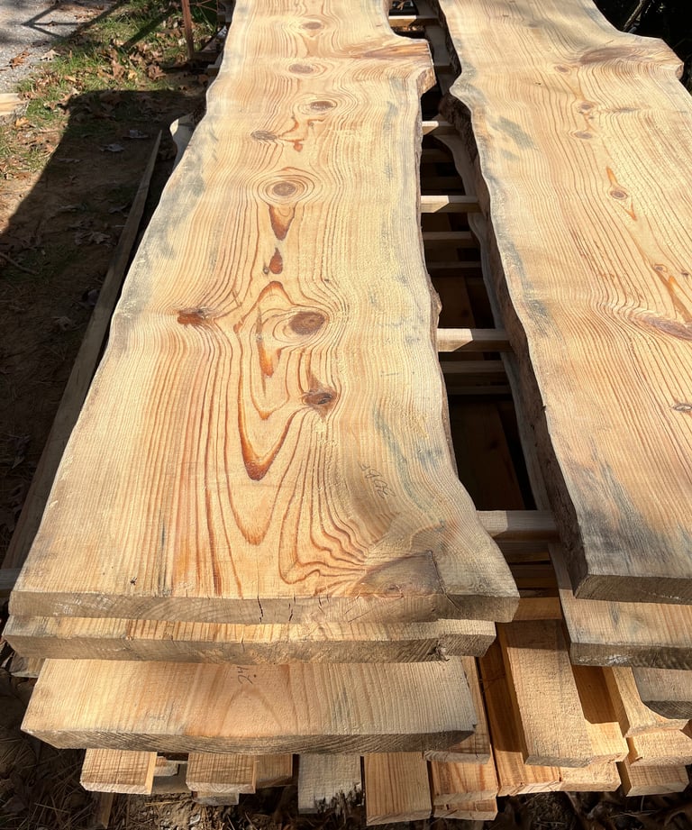 Beautiful knotty Shortleaf Pine slabs from Latimer County, Oklahoma.