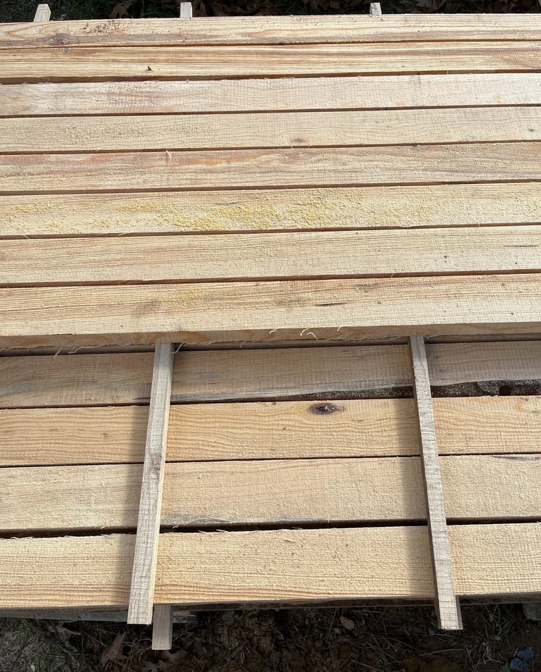 Our dimensional pine lumber is native Shortleaf Pine, sourced locally in Latimer County Oklahoma. Shortleaf pine has long been prized for its strength and durability, however it is increasingly hard to find in this day and age. Having been largely displaced in commercial forestry operations by the faster growing loblolly pine. When you buy a pine board from 1904 lumber, you're buying something that you can't get at the big box store.